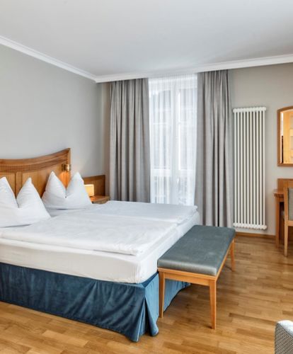 La luminosa zona giorno e la spaziosa camera da letto della nostra esclusiva junior suite suddivise spazialmente su 42-45 m², offrono un ambiente accogliente per rilassarsi dopo una lunga escursione in bicicletta o sugli sci. Rilassati nel tuo piccolo regno e sogna ad occhi aperti.