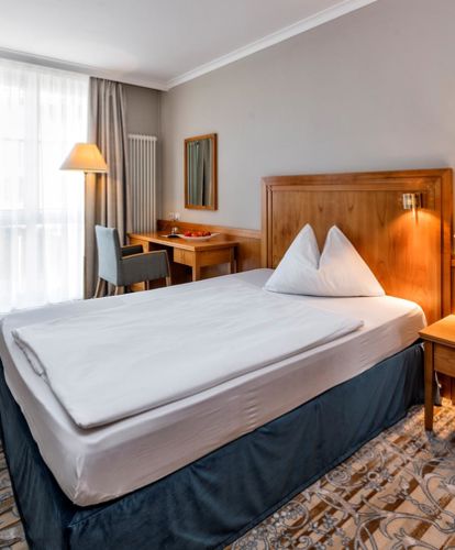La nostra elegante camera singola invita i solo travellers a rilassarsi su 20 confortevoli metri quadrati. È lo spazio perfetto per rilassarsi dopo una giornata lunghissima in città, nella natura o piena di riunioni, e ricaricare le batterie durante una notte incantevole trascorsa nel nostro paradisiaco letto alla francese.