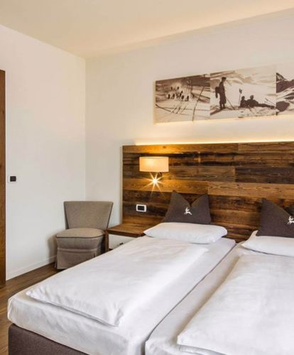 Lo stile tirolese, caratterizzato da elementi tradizionali, comfort abitativi moderni e dall'uso di splendidi tessuti in Loden e legno antico, garantisce un ambiente particolarmente piacevole.